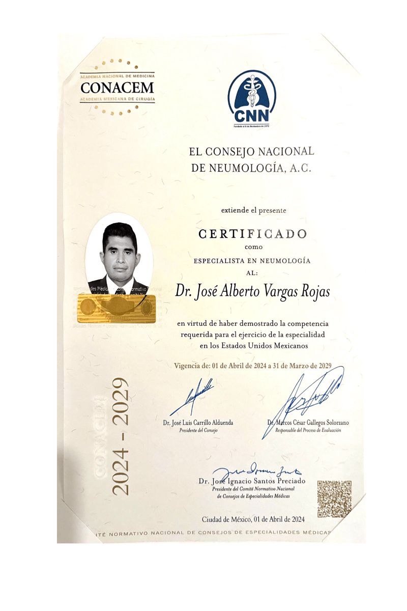 Neumólogo egresado del Instituto Nacional de Enfermedades Respiratorias, actualmente laborado en CMN Siglo XXI, Profesor adjunto de la especialidad en Neumológia adultos, en actualización medica continua, para mantener una adecuada toma de decisiones para un adecuado tratamiento y mejora de calidad de vida de mis pacientes, con empatía, calidez y profesionalismo.
